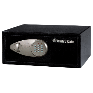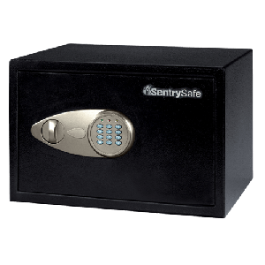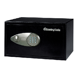 The Sentry Security Safe X055 is features an electronic lock with override key to keep valuables secure. The solid steel pry-resistant door and body help protect against theft and unauthorized entry. Carpeted floor protects your valuables.